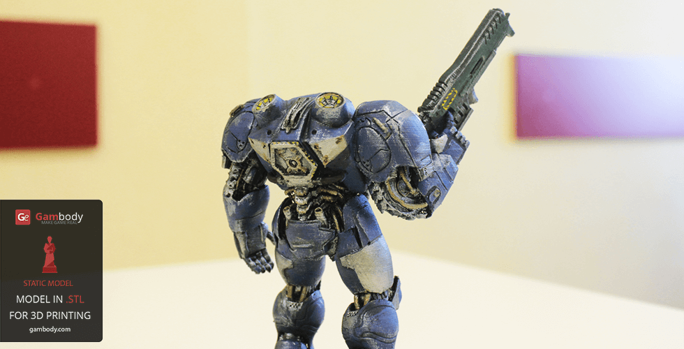 You will find all these amazing features reproduced in Terran Marine model for 3D printing. This model is showcased with his C-14 Gauss Rifle pointed up, while here you can see Tarran in idle position.