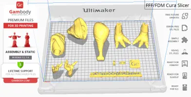 All assembly parts of the FFF/FDM versions come in STL files in recommendedpositions that were worked out in order to ensure the smoothness of the details’ surfaces after printing and so that the 3D printing beginners won't face difficulties when placing the parts on a build plate.