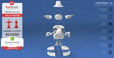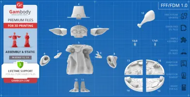 FFF/FDM 1.0 version features:- Contains 18 parts;- A printed model is 264 mm tall, 237 mm wide, 197 mm deep;- The assembly kit includes locks to attach the model's legs to the body securely without glue. Lock 17_ge_lock_7S(x9) needs to be printed 9 times; lock 18_ge_lock_10H(x8) needs to be printed 8 times;- All parts are divided in such a way that you will print them with the smallest number of support structures.