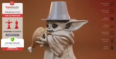 The holiday collection of adorable Baby Yoda 3D printing figurines continues! Our contributing 3D artist prepared this sculpt in honour of Thanksgiving - the day you express gratitude for whoever brings joy into your life. As per the holiday tradition, Grogu is wearing a capotain and having a piece of delicious turkey that someone lovingly cooked. This easy and heartwarming 3D print will be both a fun companion and a thoughtful gift for you this Thanksgiving!