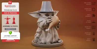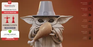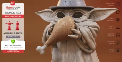 Watch the tutorial on how to assemble Baby Yoda Thanksgiving 3D Printing Figurine at Gambody YouTube channel.