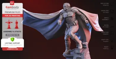 Luckily, our contributing 3D artist had a vision no less stunning in mind. He managed to capture it in highly detailed The Batman 2022 3D print model, where the mysterious persona of the superhero is towering above Gotham City ready to defend it. The scene is complemented by the masterful sculpt of the cape that resembles bat wings. This work of art deserves to be 3D printed by you!