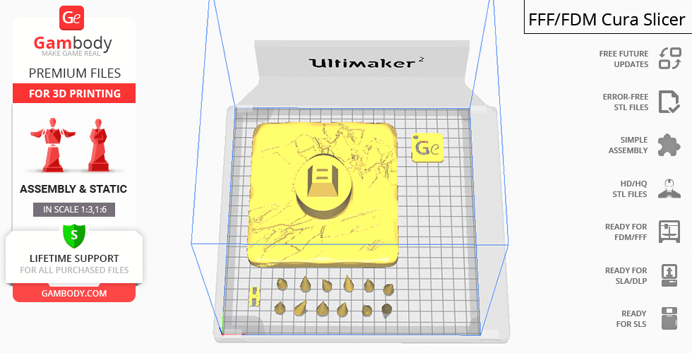 The figurine is saved in STL files, a format supported by most 3D printers. All STL files for 3D printing have been checked in Netfabb and no errors were shown.