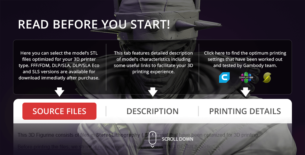Before printing the files, we strongly recommend reading the PRINTING DETAILS section.