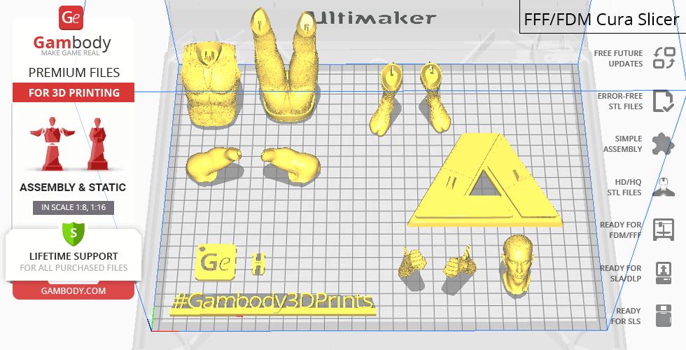 - The assembly parts in the FFF/FDM version come in the recommended print orientations for easy bed placement;