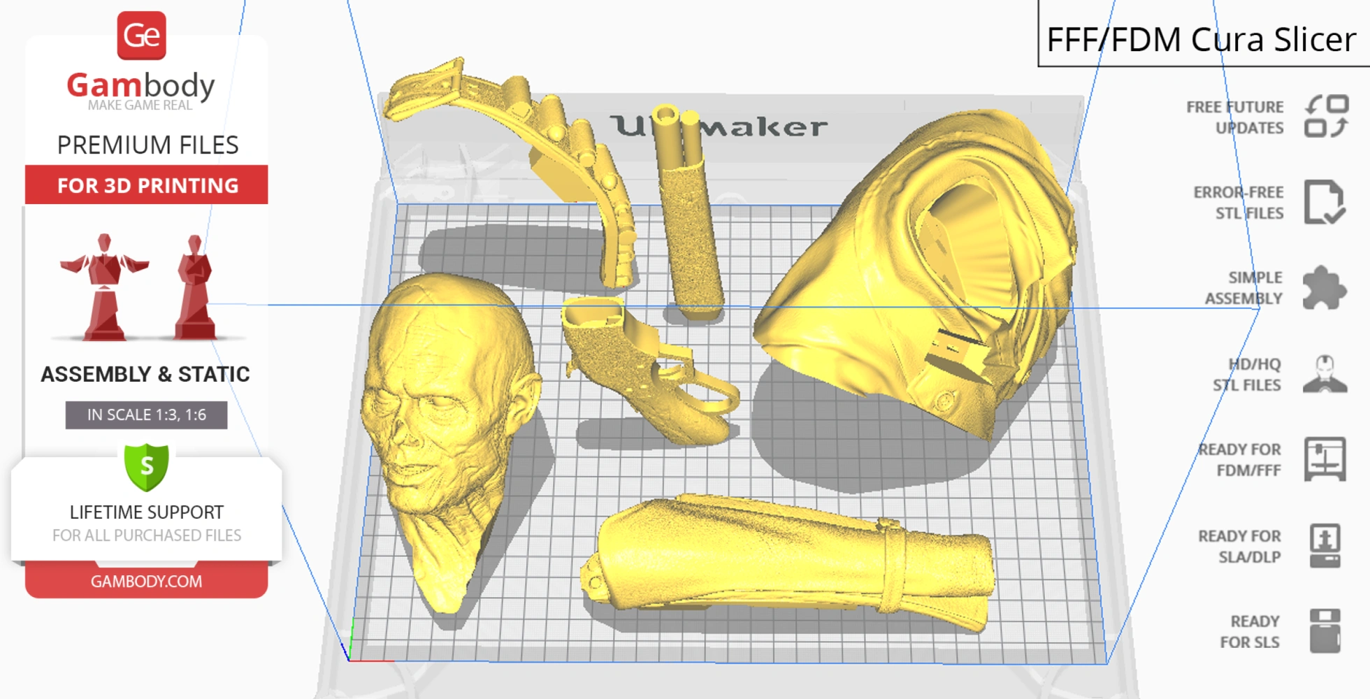 - The model is available in recommended scales of 1:3 for the FFF/FDM version and 1:6 for the DLP/SLA/SLS versions.