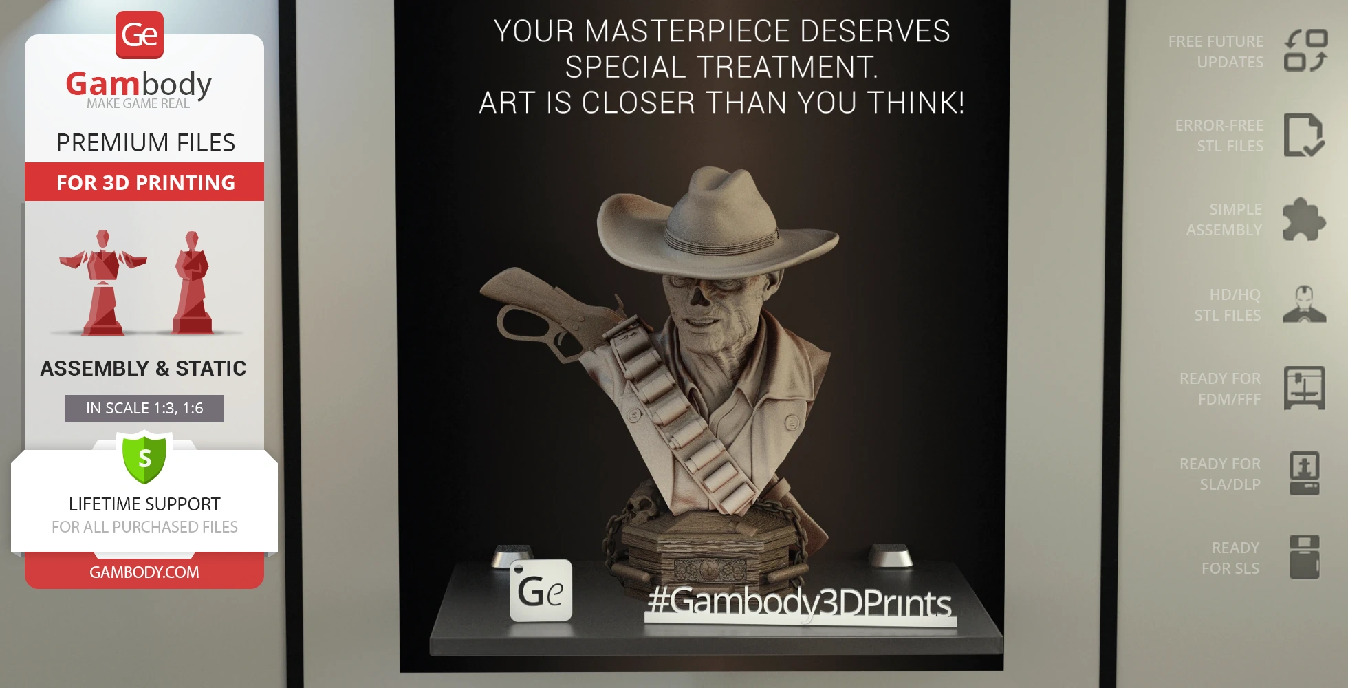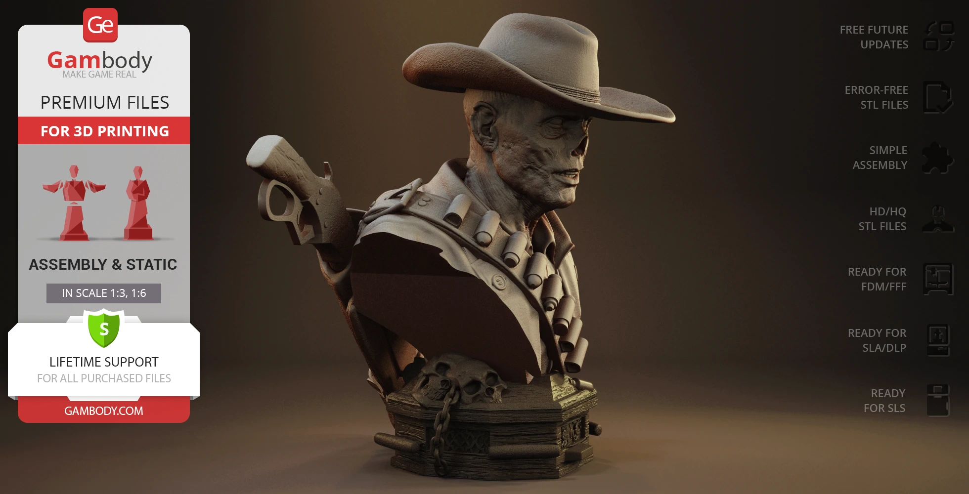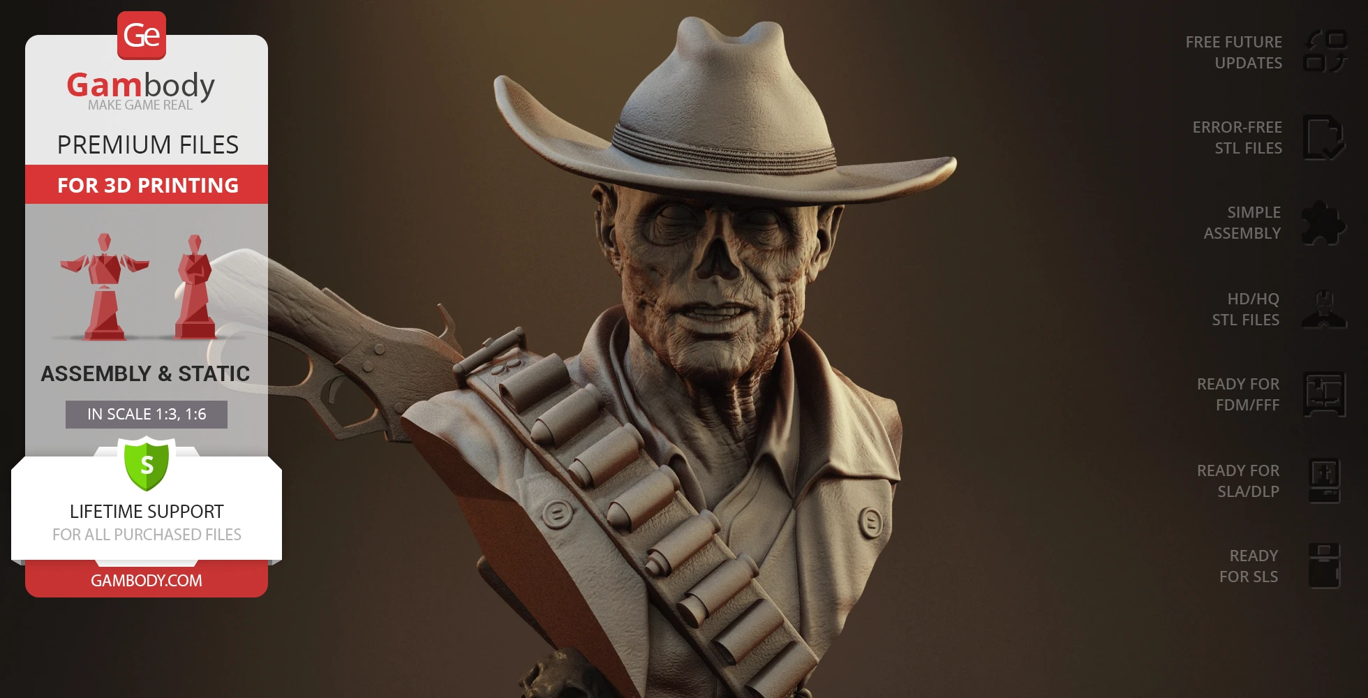 Watch the tutorial on how to assemble the 3D Printed The Ghoul Bust from the provided 3D Print Files onGambody YouTube channel.