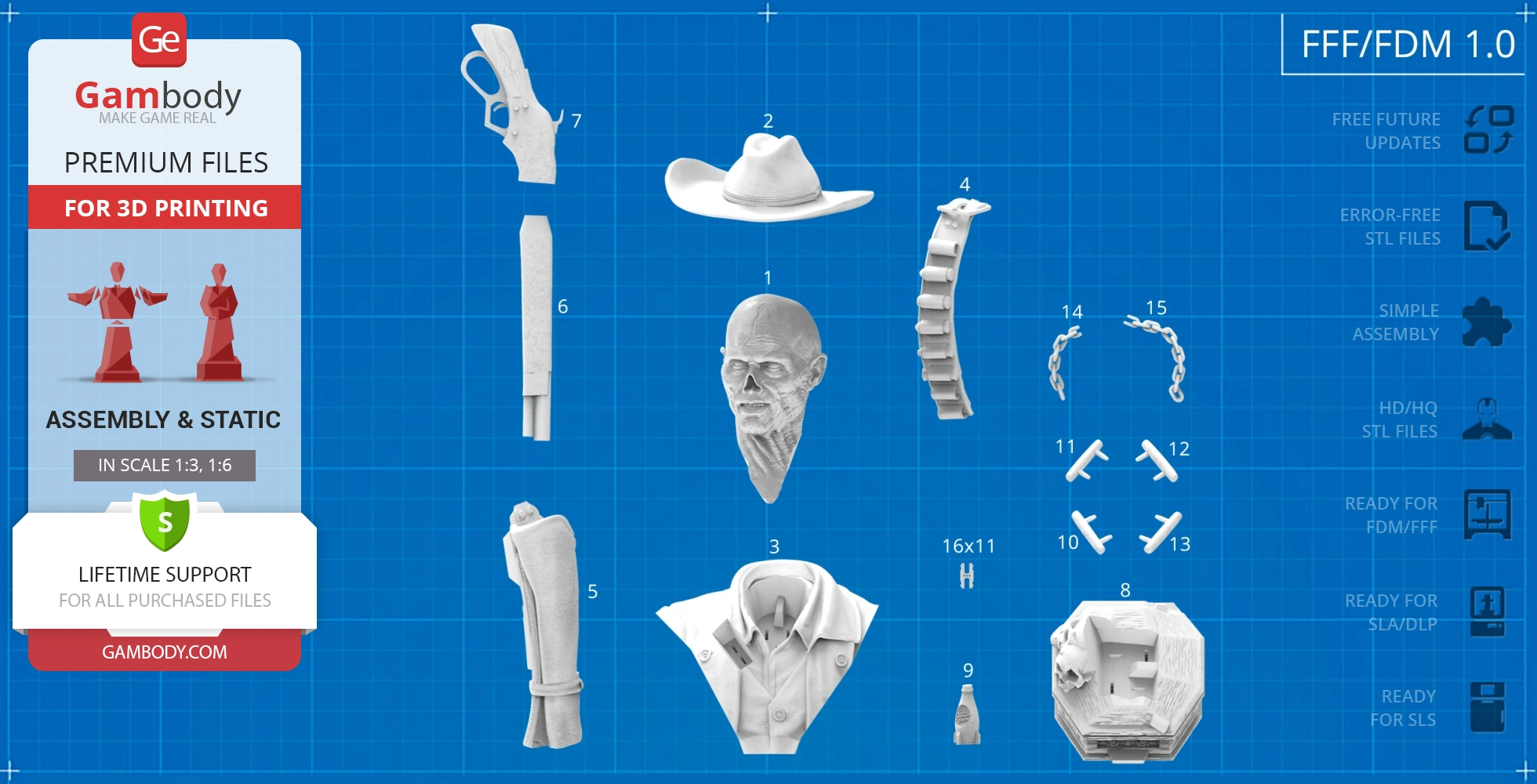 - STL files of high-poly The Ghoul Bust model for 3D printing consist of 25 files;