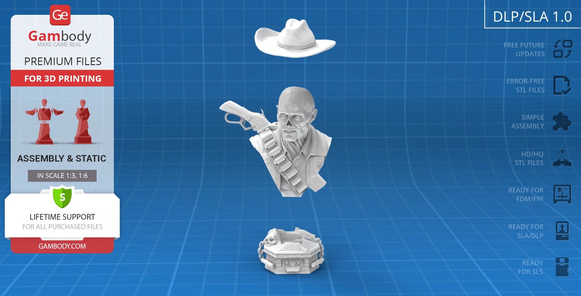 - 4 versions of The Ghoul Bust STL files for FFF/FDM, DLP/SLA, DLP/SLA Eco, and SLS — files for all versions are available for download after the purchase;