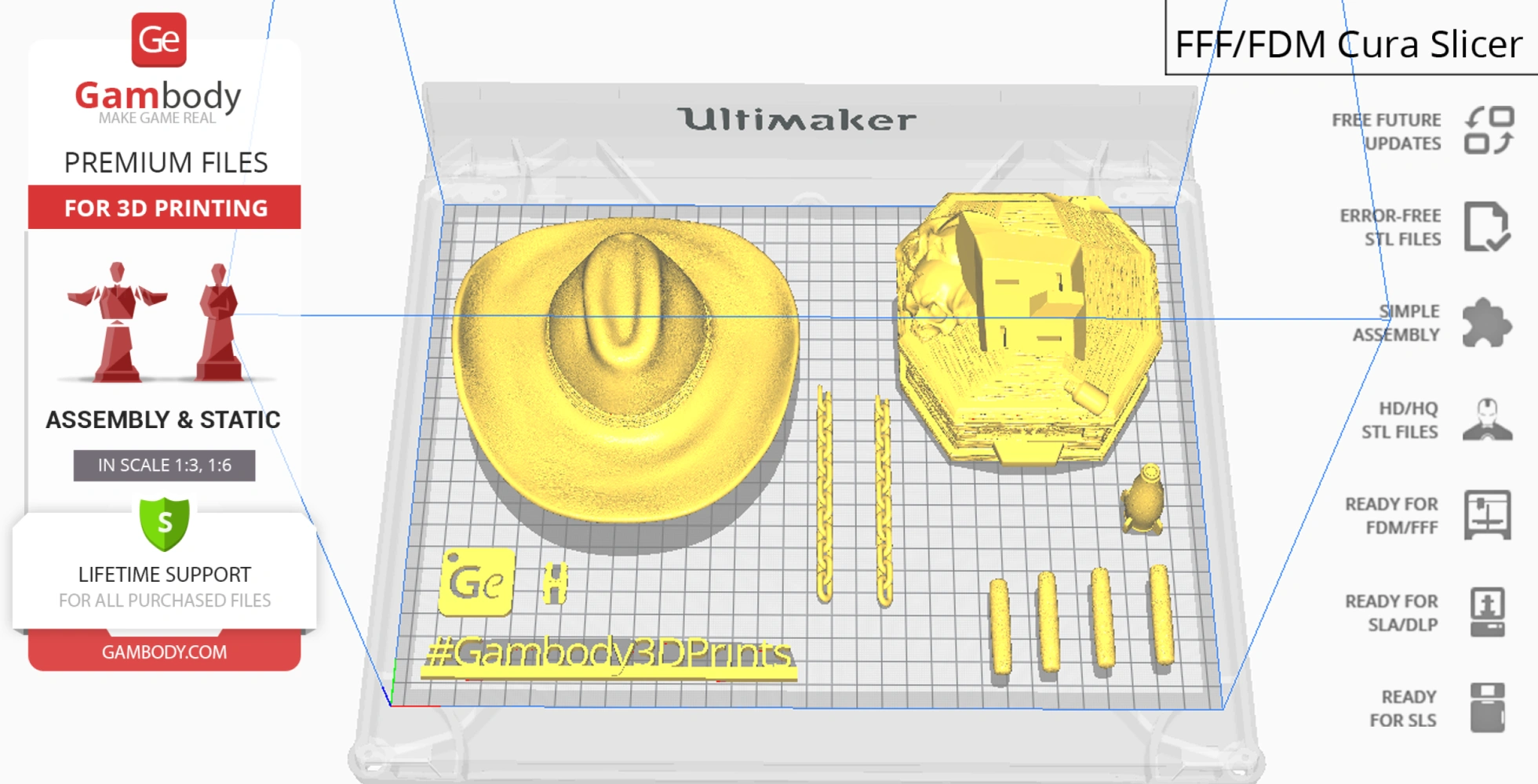 - The assembly parts in the FFF/FDM version come in the recommended print orientations for easy bed placement;
