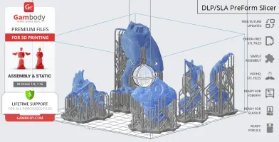 DLP/SLA 1.0 version features:- Contains 6 parts;- A printed model is 120 mm tall, 84 mm wide, 87 mm deep;- All parts are divided in such a way to fit the build plates and to ensure that support structures are generated where needed.