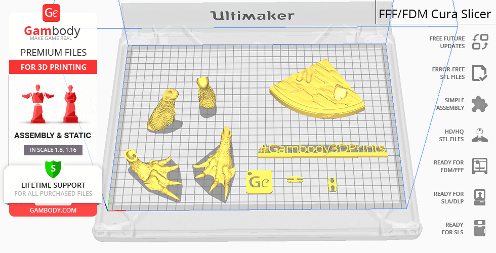 - STL files of Party Beach Monster 3D printing model which consist of 42 parts;- 4 versions of files for this model for FFF/FDM, DLP/SLA, DLP/SLA Eco and SLS;- High-poly detailed figurine of Party Beach Monster;- Detailed settings that we provide as a recommendation for Cura , Simplify3D and Slic3r for the best print;- Full technical support from the Gambody Support Team.