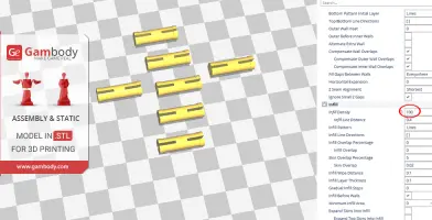Infill Density: 20% (all parts of the connectors should be printed at 100% infill)