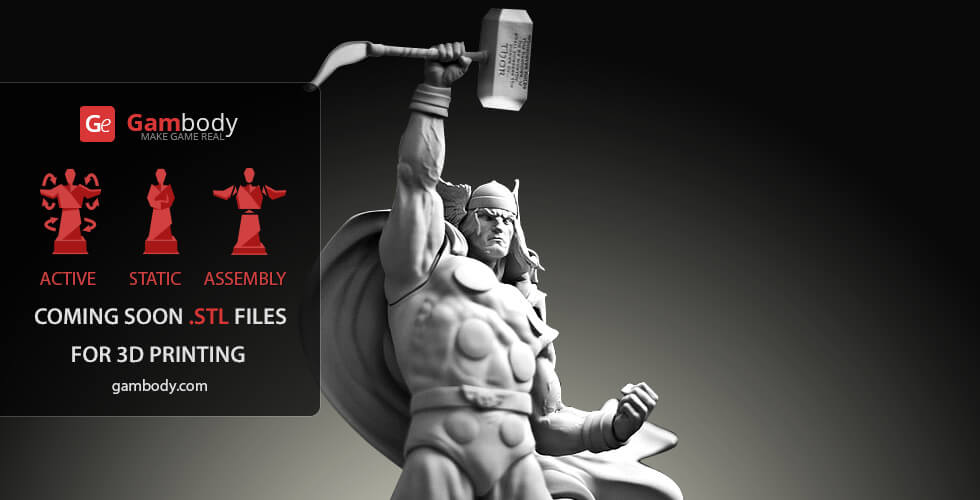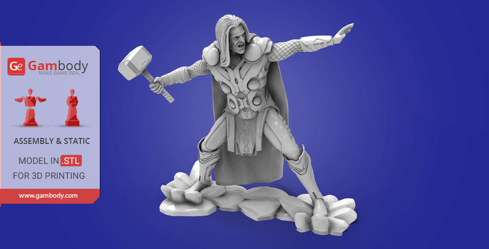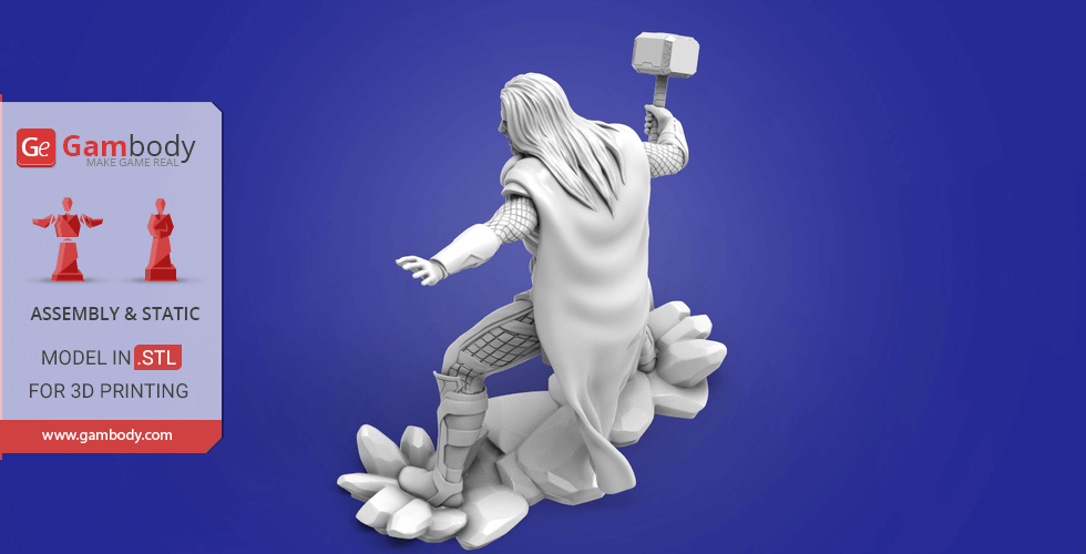 Thor God of Thunder 3D model for printing is saved in STL files, a format supported by most 3D printers.