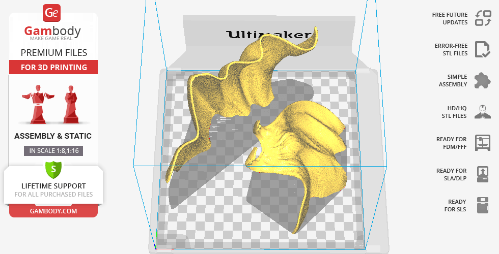 - 3 versions of files for this model for FFF/FDM, DLP/SLA, and SLS;