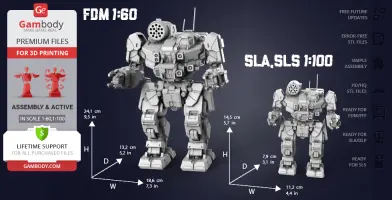 Scale: MWO Thunderbolt height is 14500 mm. The scale of this model made 1/60 for FFF/FDM version and 1/100 for DLP/SLA/SLS version.