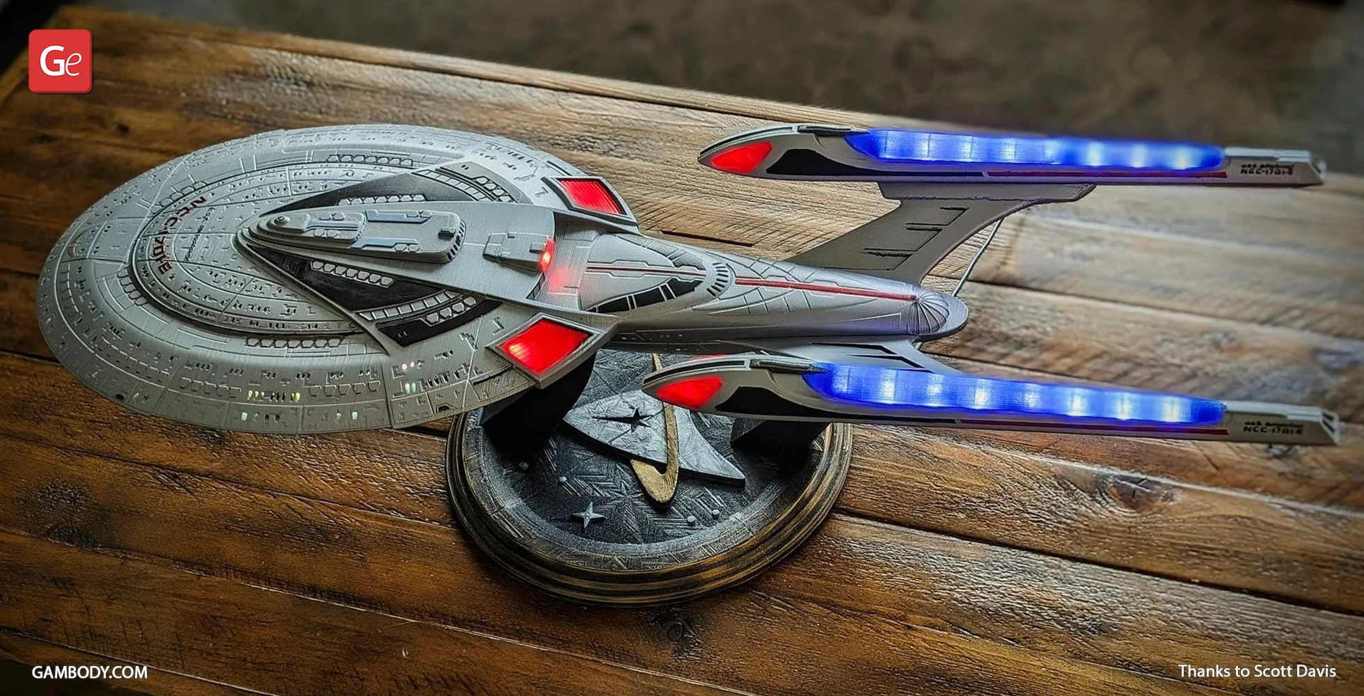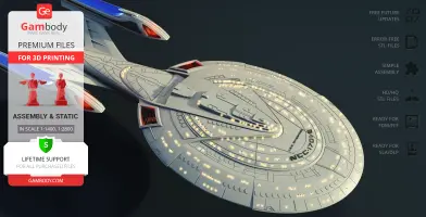USS Enterprise NCC-1701-E for 3D printing is an static assembly model and its moderation and adaptation for different types of 3D printers took the Gambody team 35 hours in total.