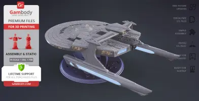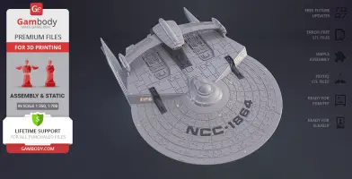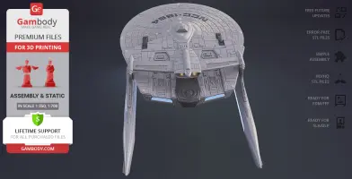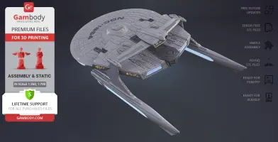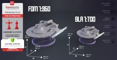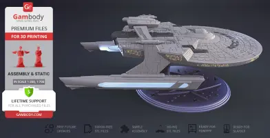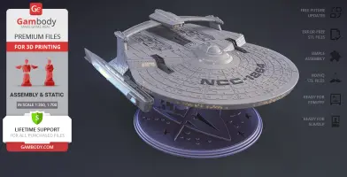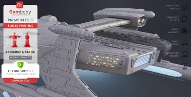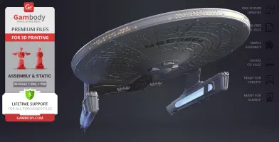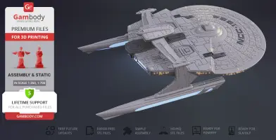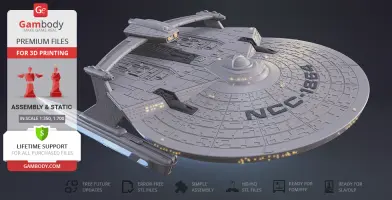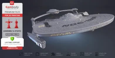 USS Reliant for 3D printing is an active assembly model and its moderation and adaptation for different types of 3D printers took the Gambody team 43 hours in total.