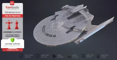 The memorable form was captured by our contributing 3D artist in the USS Reliant 3D Printing Model. The large saucer of the ship is decorated with elaborate patterns and has the NCC-1864 logo proudly displayed on it. Hundreds of small windows across the hull and the shuttles safely hidden at the bay remind us of the Reliant's huge scale, and the sharp futuristic pylons create a sense of moving through time and space at unimaginable speed. Make sure to 3D print the USS Reliant model to forever enjoy the beauty of sci-fi design!