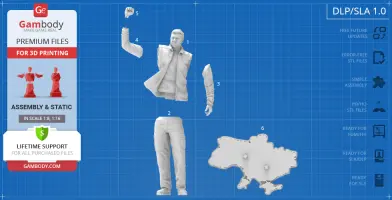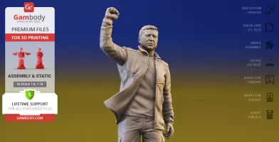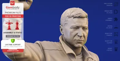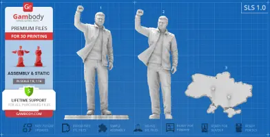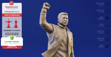 Volodymyr Zelenskyy 3D Printer Files | Assembly includes 3 version(s) for the supported 3D printer type(s): FFF/FDM, DLP/SLA, SLS. Files are available for download after purchase.
