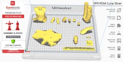 - The assembly parts in the FFF/FDM version come in the recommended print orientations for easy bed placement;