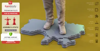 A solid Mr. Zelenskyy with and without the platform. The assembly parts are connected using specially designed integrated connectors that fit securely into the corresponding slots. Optionally, for added strength and rigidity, the static connections can be glued together;