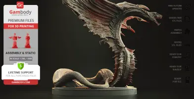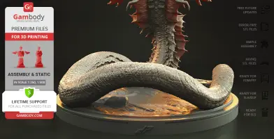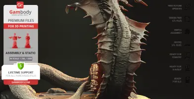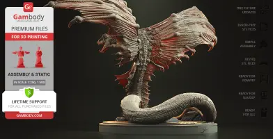 Inspired by the iconic movie scene with Warbats, our contributing artist designed this 3D print model portraying the iconic daikaiju in all its glory. The monster has the torso and a head of a snake; the large wings running down the top half of its body and the exceptional size of the creature testify to the uniqueness of Warbat. The attacking posture of the monster reveals the fierceness and savageness of the character. Warbat is a must for every fan of the Godzilla franchise, it will make your collection simply unrivaled!