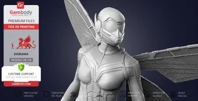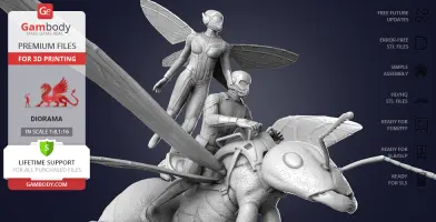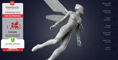 This figurine is the first part of Diorama "Ant-Man and The Wasp". The model is saved in STL files, a format supported by most 3D printers.