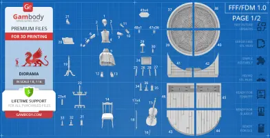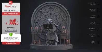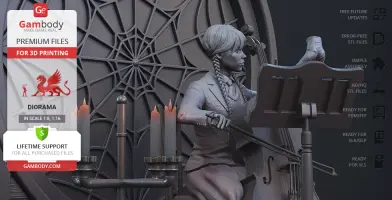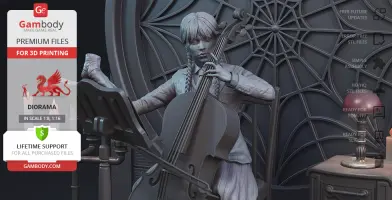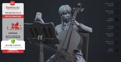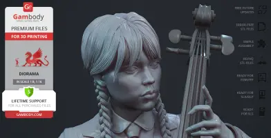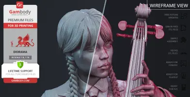 - STL files of high-poly Wednesday in Diorama model for 3D printing consist of 118 files;