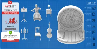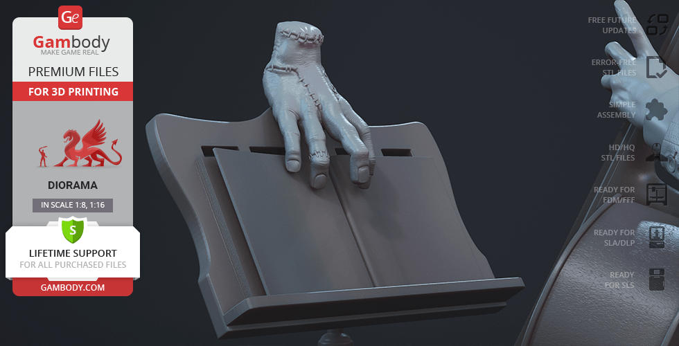 Watch the tutorial on how to assemble the 3D Printed Wednesday Diorama from the provided 3D Print Files on Gambody YouTube channel.