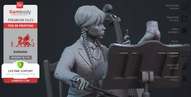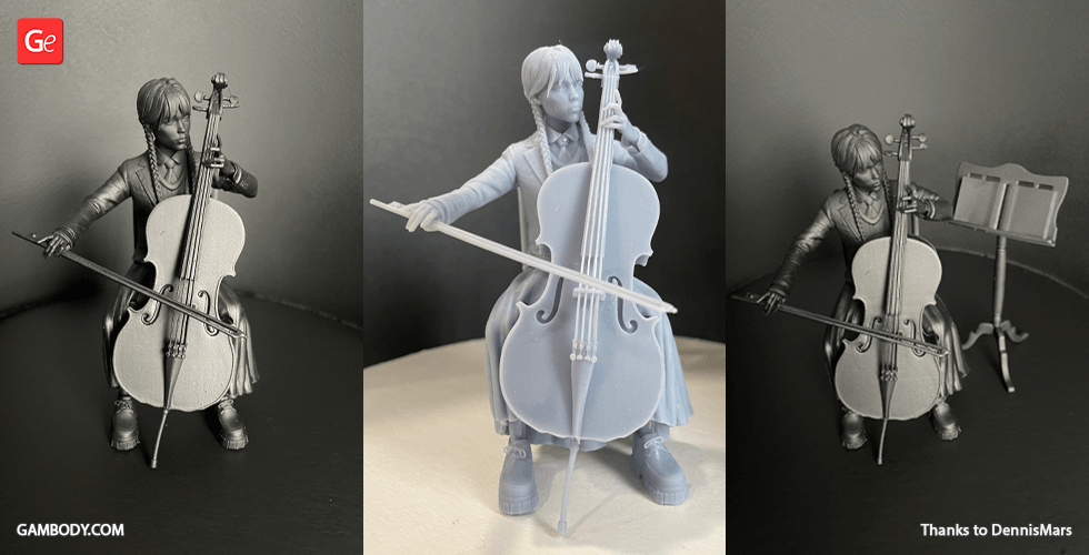 - This 3D printing model is a highly detailed diorama that captures Wednesday playing the cello;