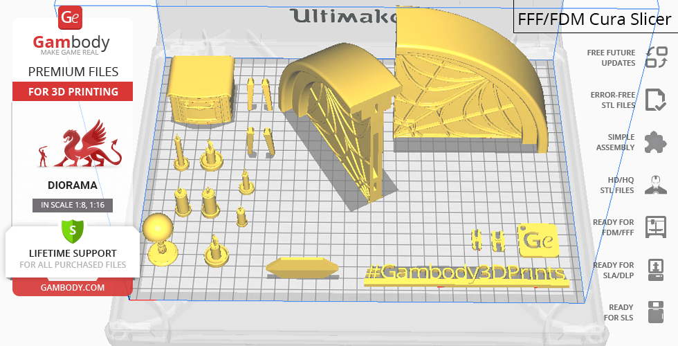 - The assembly parts in the FFF/FDM version come in the recommended print orientations for easy bed placement;