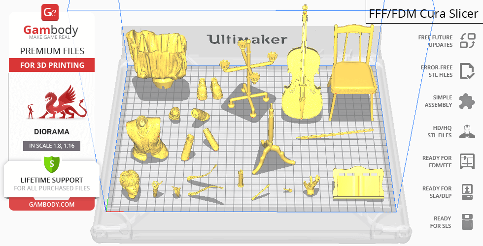- The model is available in recommended scales of 1:8 for the FFF/FDM version and 1:16 for the DLP/SLA/SLS versions.
