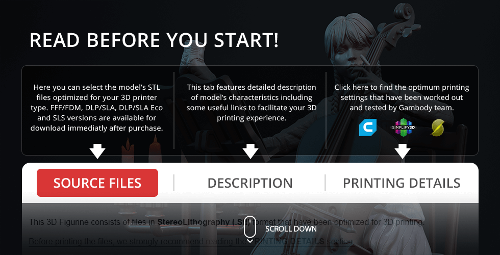 You can get the STL Files of Wednesday Diorama model immediately after the purchase! Just click the green Buy button in the top-right corner of the model’s page. You can pay with PayPal or your credit card.