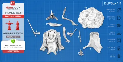 - STL files of high-poly Lord of the Nazgul 3D printer model consist of 66 parts;