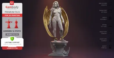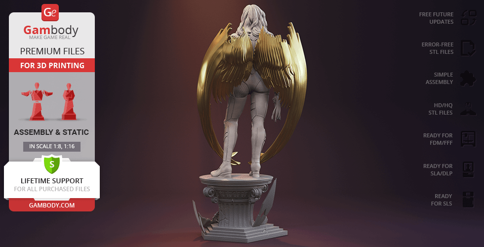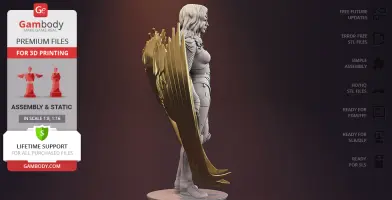 - The character can be displayed with or without her majestic wings, giving you a choice in how to showcase her.