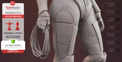 Watch the tutorial on how to assemble the 3D printed Wonder Woman 1984 from the provided 3D print files on Gambody YouTube channel.