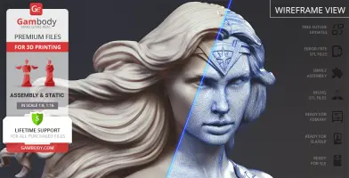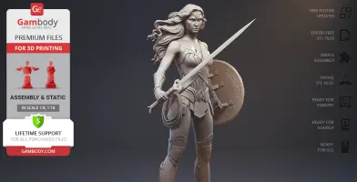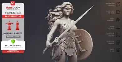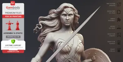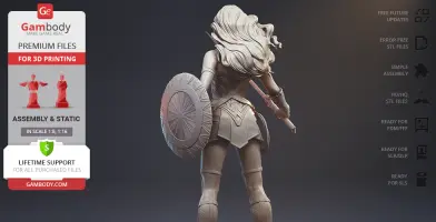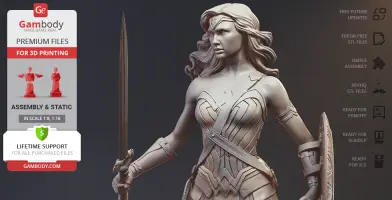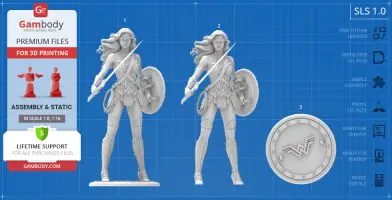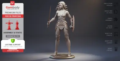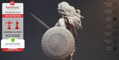 - STL files of high-poly Wonder Woman 2017 3D Figurine for 3D printing consist of 39 parts