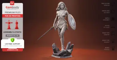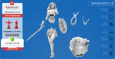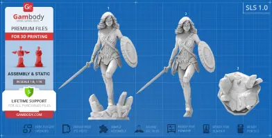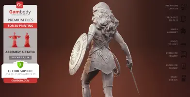 Wonder Woman Movie Version 3D Printer Files | Assembly includes 3 version(s) for the supported 3D printer type(s): FFF/FDM, DLP/SLA, SLS. Files are available for download after purchase.
