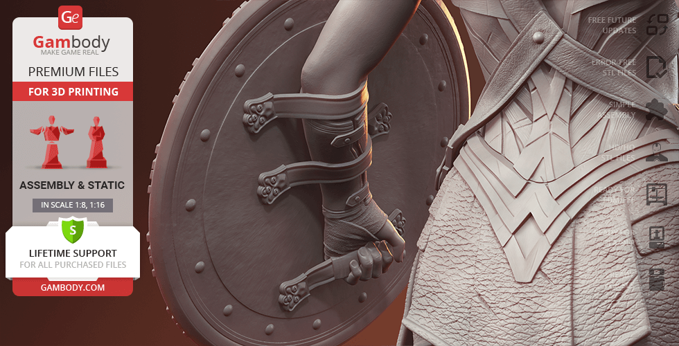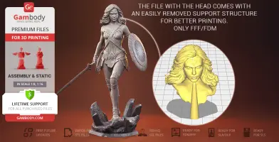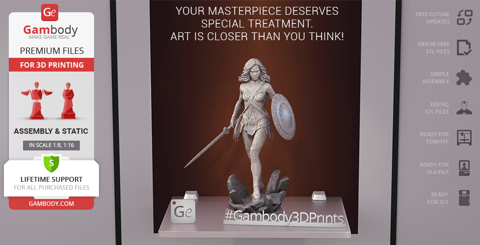 Watch the tutorial on how to assemble the 3D Printed Wonder Woman Model from the provided 3D Print Files onGambody YouTube channel.