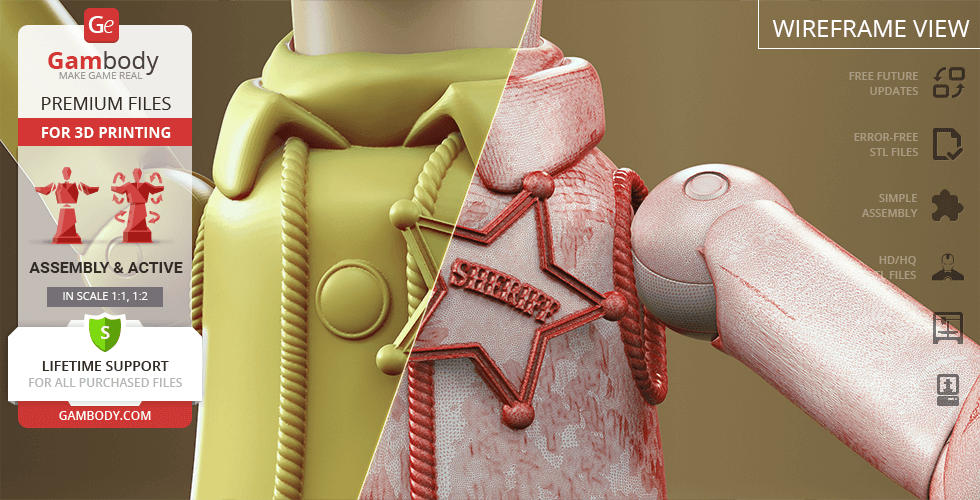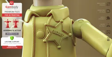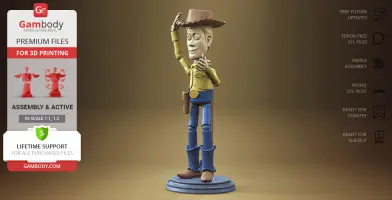The vintage pull-string cowboy toy with a discerning eye inspired our dedicated 3D artist to develop the design of this great model for 3D printing. Woody is depicted in his cowboy costume: a shirt and a vest with a sheriff badge on it; a holster and a buckle attached to the belt, and, of course, cowboy boots and hat. The head of the model is very recognizable for its oblong shape and big round eyes, alternative versions of the head with various facial expressions are available for Woody 3D printing model. In addition to its bright appearance, the model has a large number of articulated parts. Don’t wait and start printing one of the most famous characters in the history of animated films now!