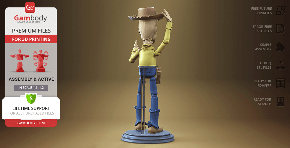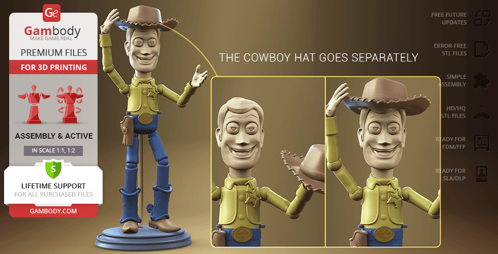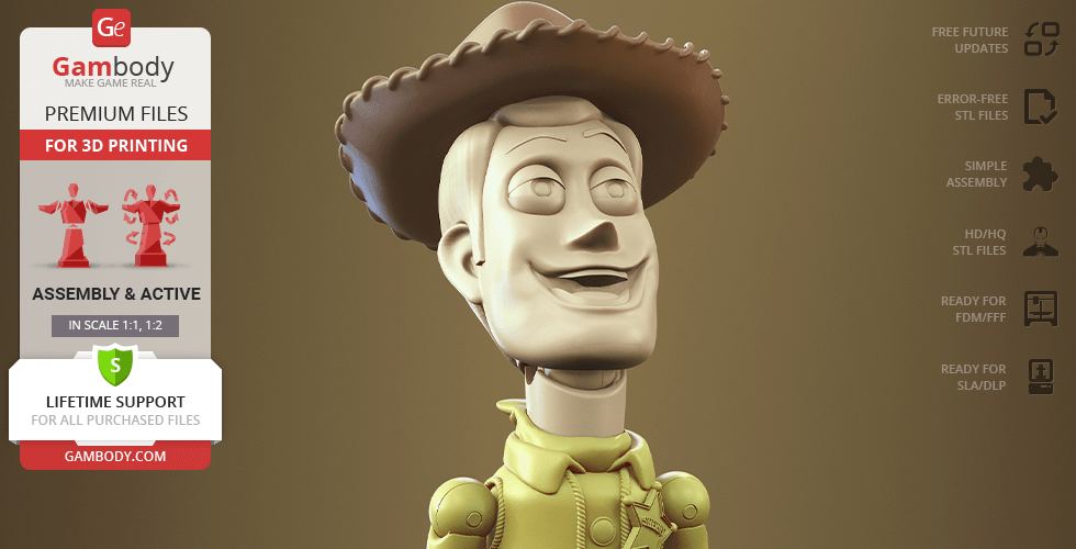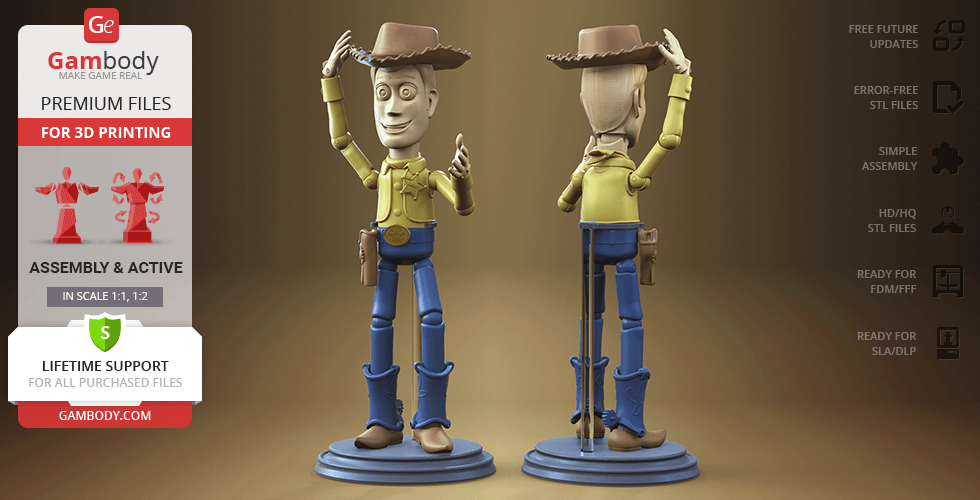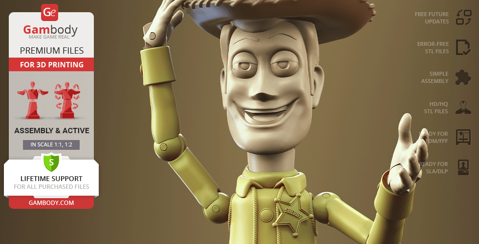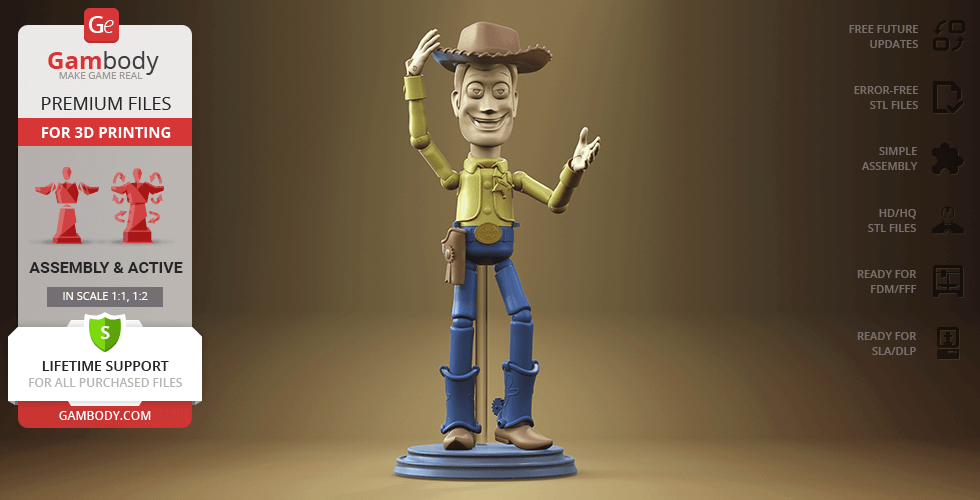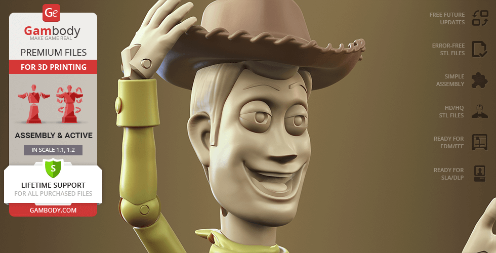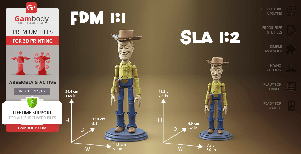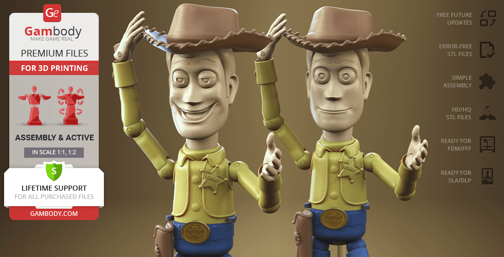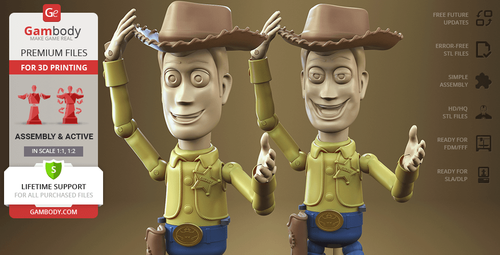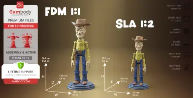 - 2 versions of Woody STL files for FFF/FDM and DLP/SLA - files for all versions are available for download after the purchase;