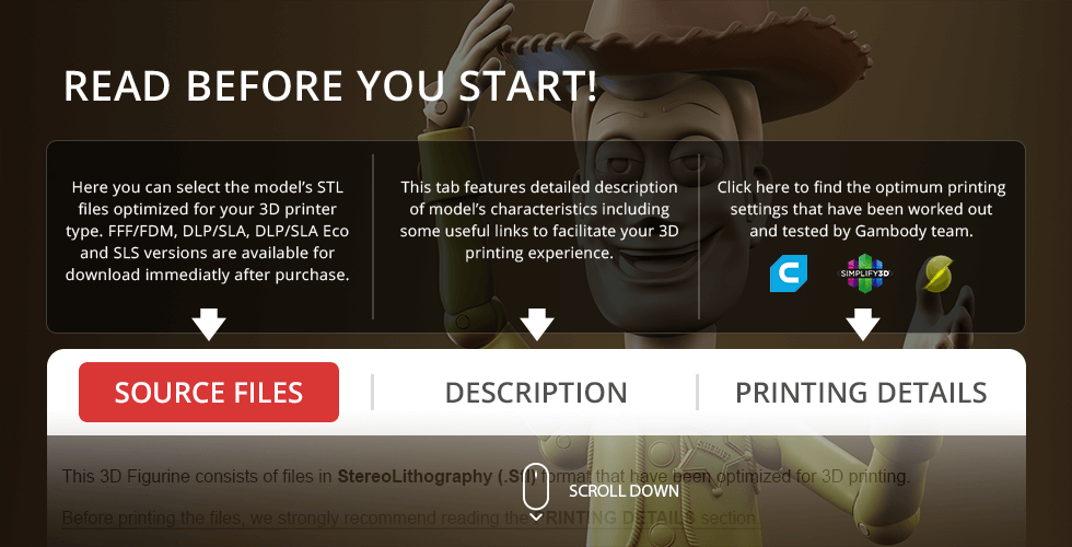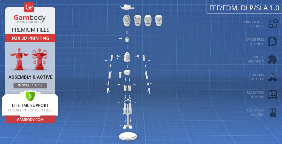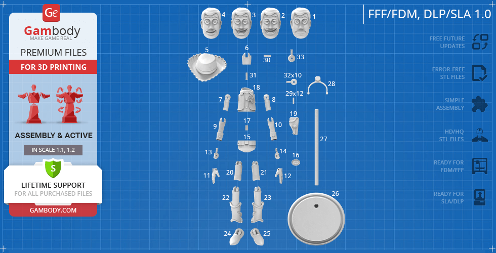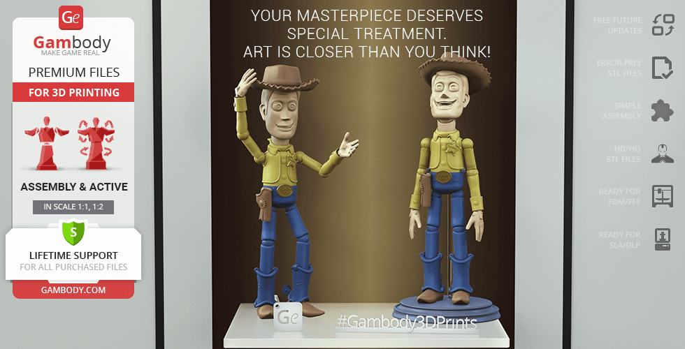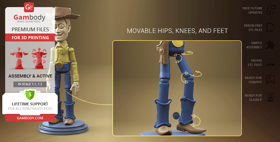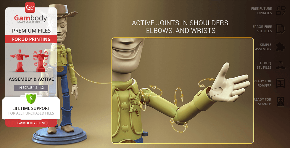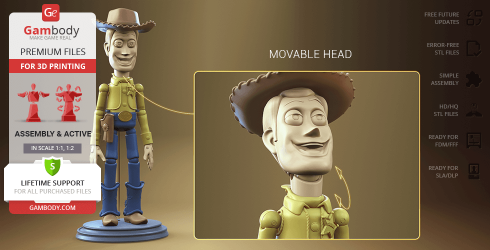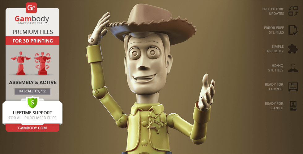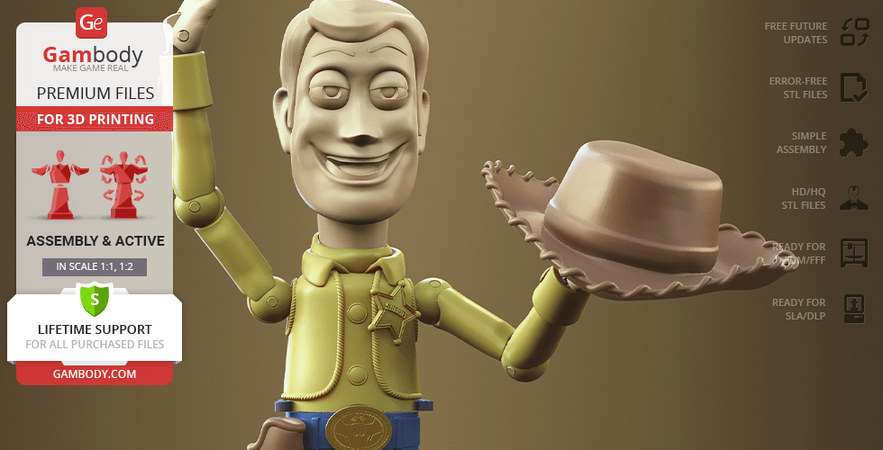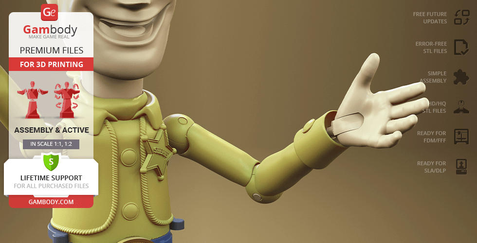 - 2 versions of Woody STL files for FFF/FDM and DLP/SLA - files for all versions are available for download after the purchase;