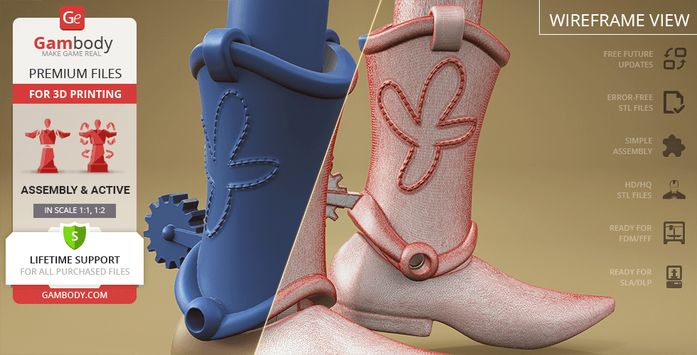 All assembly parts in the FFF/FDM 1.0 version are provided in STL files in recommended positions that were worked out in order to ensure the smoothness of the details’ surfaces after printing and that the 3D printing beginners won’t face difficulties when placing the parts on a build plate. When downloading any model’s file you will also receive “Assembly Manual” for FFF/FDM 1.0 and DLP/SLA 1.0 versions in PDF and video formats. We highly recommend that you get acquainted with the “Assembly Video” and “Assembly Manual” before getting down to the Woody 3D printing model.