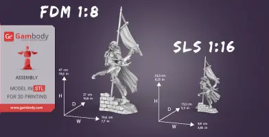 The model's scale was calculated from Sylvanas' actual height that is 2130 mm. The 3D printing figurine's chosen scale is 1/8 for the FFF/FDM version and 1/16 for the DLP/SLA/SLS versions.