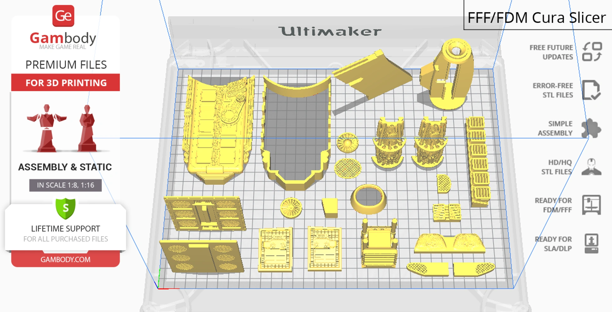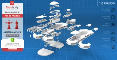For you to receive the cleanest 3D printing result possible, minimize the amount of filament needed for generated support, and make use of the active elements designed by Gambody Engineers, the vehicle was divided into convenient assembly parts.