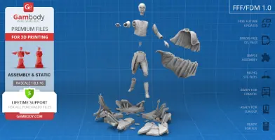 SLS 1.0 version features:- Made as a solid one-piece figurine;- A printed model is 118 mm tall, 110 mm wide, 143 mm deep;- Contains 3 parts - a one-piece model and the figurine with the platform separated.