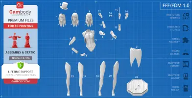 Zatanna 3D Printer Files | Assembly includes 3 version(s) for the supported 3D printer type(s): FFF/FDM, DLP/SLA, SLS. Files are available for download after purchase.