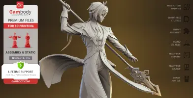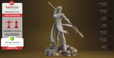 In the 3D printing model sculpted by our contributor, Zhongli showcases the prowess he honed throughout millennia. The character is wielding his signature Vortex Vanquisher polearm with sophisticated elegance, while his mortal life attire flutters from the motion. The swirl of rocks and the flow of Mora coins on the complementary platform symbolise the many blessings Morax gifted to the people of Liyue. So the best way for you to commemorate your favourite Archon is by 3D printing this gorgeous model!