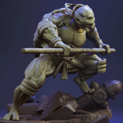Intricately detailed 3D bust of a figure holding a dagger, wearing ornate attire.